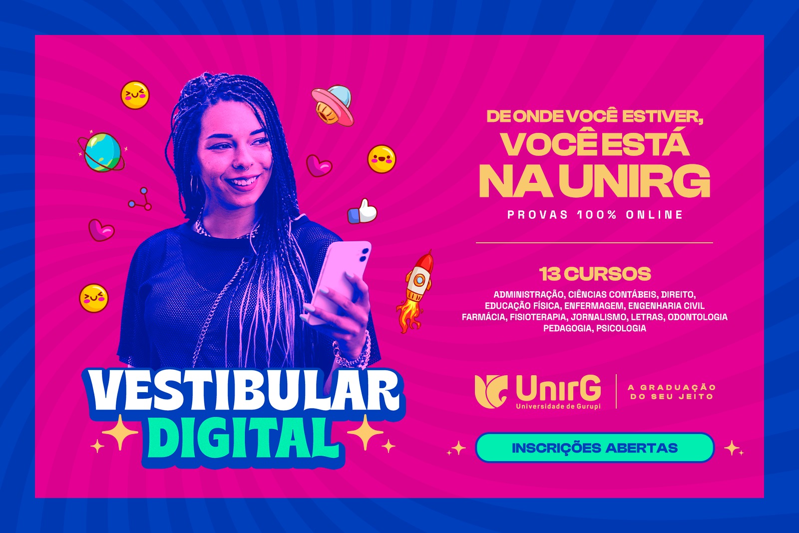 Está aberto o período de inscrição do processo seletivo digital da Universidade de Gurupi – UnirG, para o primeiro semestre de 2024. Este vestibular conta com novidades: as mensalidades estão mais acessíveis, com valores a partir de R$ 89,70 (para estudantes que optarem pelo CrediUnirG Plus), além da oferta de bolsas.