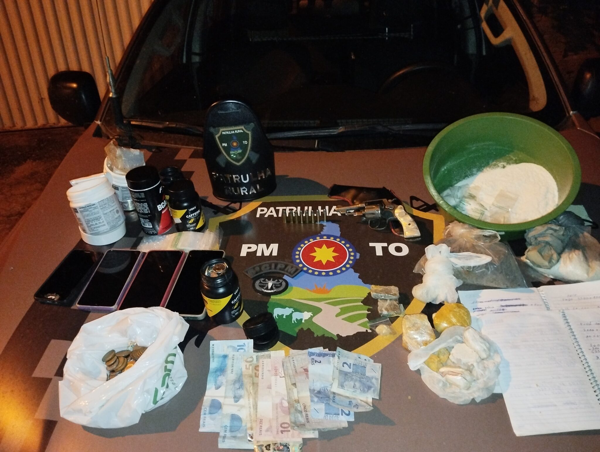 Na tarde desta segunda-feira, 05, na cidade de Rio dos Bois, a Polícia Militar prendeu um casal, suspeito de tráfico de drogas. Os policiais apreenderam porções de entorpecentes, uma arma de fogo, munições, celulares e dinheiro em espécie.