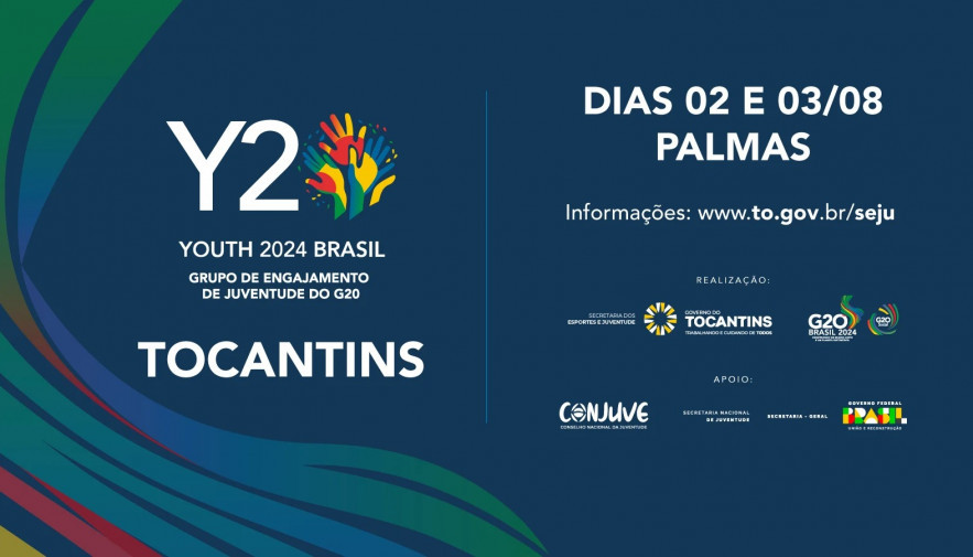 Palmas recebe nesta sexta-feira, 2, às 8h, no auditório do Tribunal de Justiça, o encontro regional do Youth20 (Y20), o grupo oficial de engajamento da juventude no G20. O evento promovido pelo Governo do Tocantins, por meio da Secretaria de Estado dos Esportes e Juventude (Seju), trabalhará eixos como inclusão e diversidade; transição energética e desenvolvimento sustentável; e inovação e futuro do mundo do trabalho. A programação segue no dia 3, às 8h, na Escola Estadual Professora Elizângela Glória Cardoso, com as discussões dos grupos de trabalho.