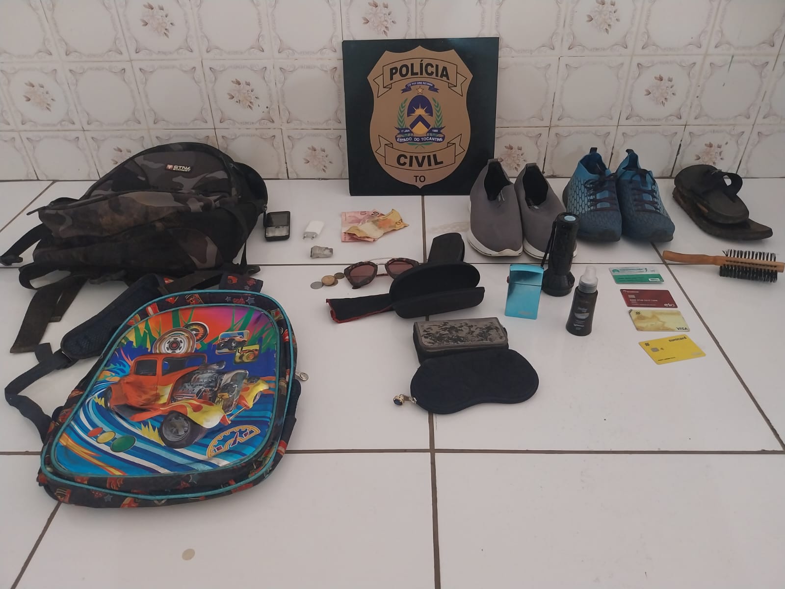 De posse do indivíduo, os policiais civis encontraram e apreenderam vários objetos que serão periciados e, posteriormente, restituídos aos seus verdadeiros proprietários.