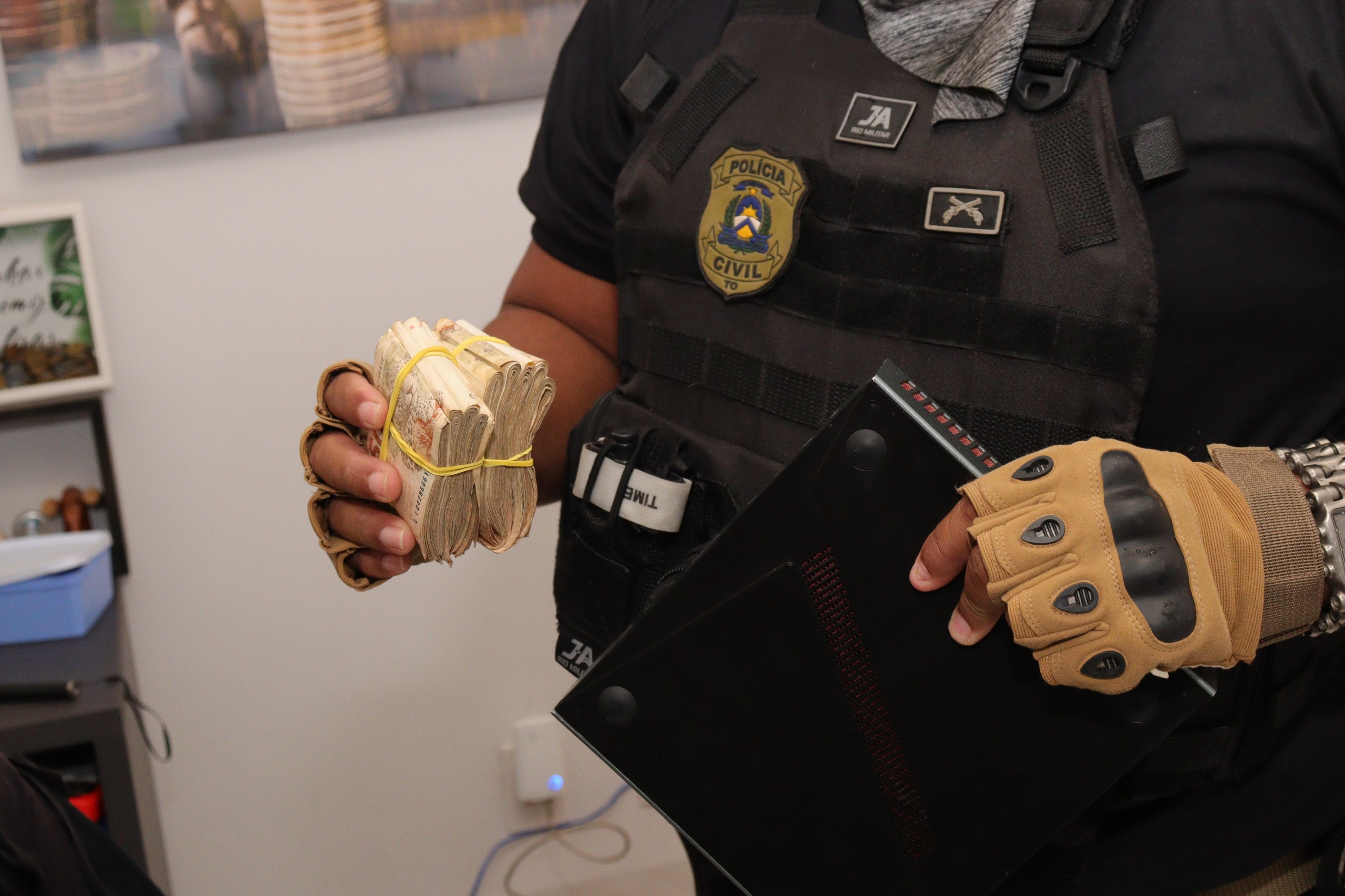 Em Palmas foram cumpridos dois mandados de busca, em endereços vinculados a um dos investigados. Nos locais, foram apreendidos computadores, celulares, dispositivos eletrônicos diversos, valores em espécie e um veículo automotor.