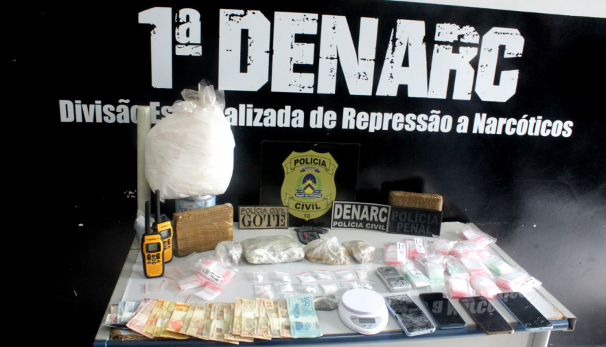 Cinco pessoas foram presas pela Polícia Civil no início da manhã desta quinta-feira, 29, na região sul de Palmas e no distrito de Taquaruçu, por tráfico de drogas e associação criminosa. Os três homens e as duas mulheres foram presos em flagrante durante o cumprimento de mandados de busca e apreensão realizados pelas equipes da 1ª Divisão Especializada de Repressão a Narcóticos (Denarc – Palmas) e do Grupo de Operações Táticas Especiais (Gote).