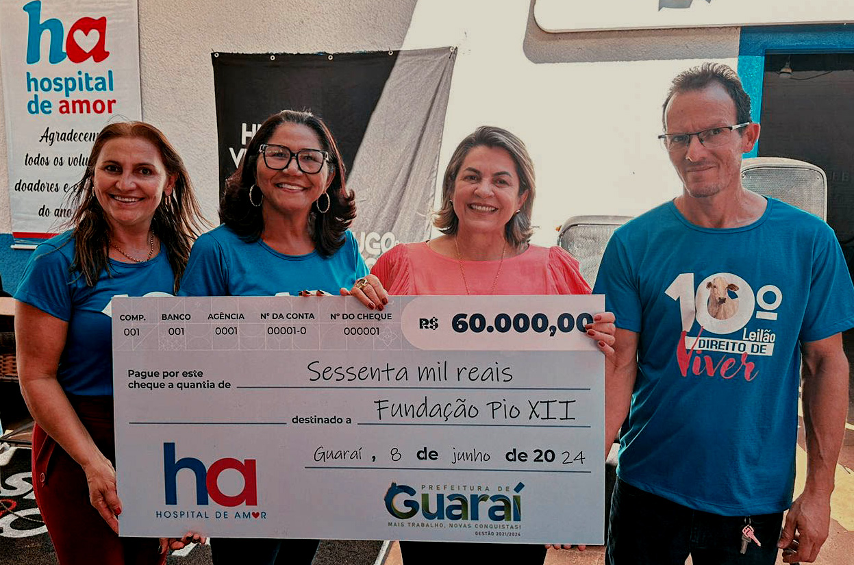 A prefeitura de Guaraí destinou R$60 mil para as ações beneficentes realizadas pelo Hospital de Amor. Com o recurso já na conta da instituição, o anúncio foi oficializado durante a 10ª edição do leilão beneficente em prol do Hospital de Amor, na tarde deste sábado, 08 de junho.