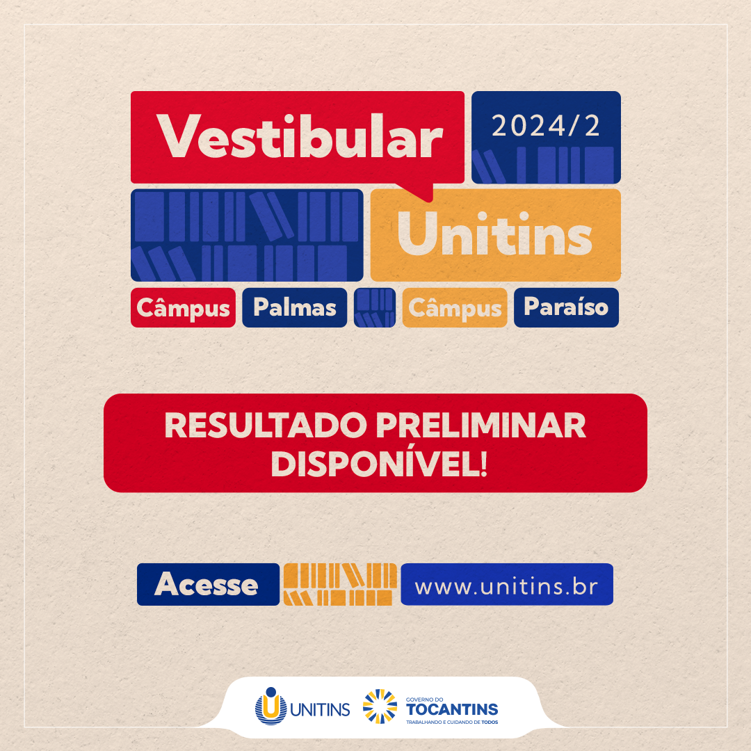 A Universidade Estadual do Tocantins divulgou, nesta quinta-feira, 04, o resultado preliminar do Vestibular 2024/2 para os cursos presenciais dos câmpus Palmas e Paraíso do Tocantins. A publicação segue a previsão do novo cronograma divulgado na página oficial do certame, no Portal da Unitins. Os candidatos interessados têm até às 23h59 desta sexta-feira, 05, para interpor recurso.