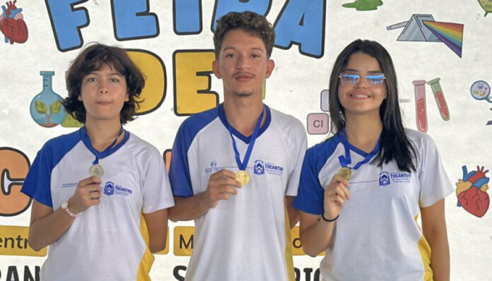 No Centro de Ensino Médio Paulo Freire, localizado em Araguaína, os estudantes Douglas Leon Brandão Silva e Luane amorim Faustino conquistaram medalhas de ouro, e a aluna Roberta Cardoso Brandão, a medalha de prata. A equipe da escola ficou tão satisfeita com o resultado que fez uma homenagem aos estudantes premiados na Feira de Ciências, realizada nesta quinta-feira.