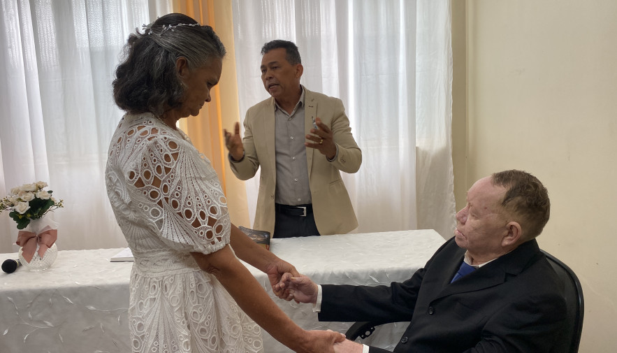 A realização de um sonho, alimentado há mais de 20 anos, quando se iniciou a convivência marital. Assim foi o casamento realizado pela Casa de Apoio Glória Moraes, anexo do Hospital Regional de Araguaína (HRA), que no sábado, 18, oficializou a união do paciente Severino Clemente da Silva, com Rozeni Oliveira.