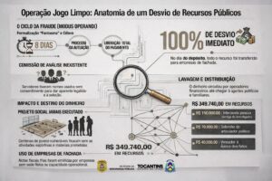 A Polícia Civil do Tocantins reforça que segue atuando de forma firme e técnica no combate à corrupção e à malversação de recursos públicos, garantindo a responsabilização dos envolvidos, sempre com respeito ao devido processo legal e às garantias individuais. A Operação Jogo Limpo permanece em andamento, com outros desdobramentos em apuração.